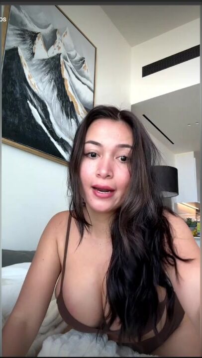 Pandora Kaaki zeigt ihre Brüste in einem braunen Bikini in einem Schlafzimmer-Video