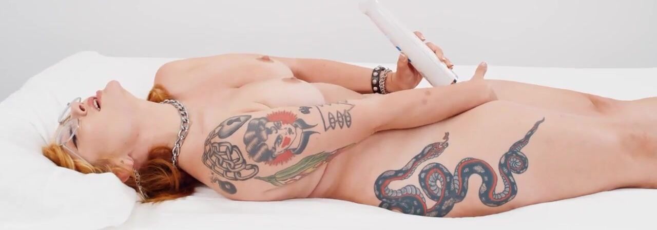 Kurvige tätowierte Babe Emma Magnolia spreizt ihre Muschi bevor sie mit einem Vibrator neckt in diesem dampfenden Solo Masturbationsvideo.