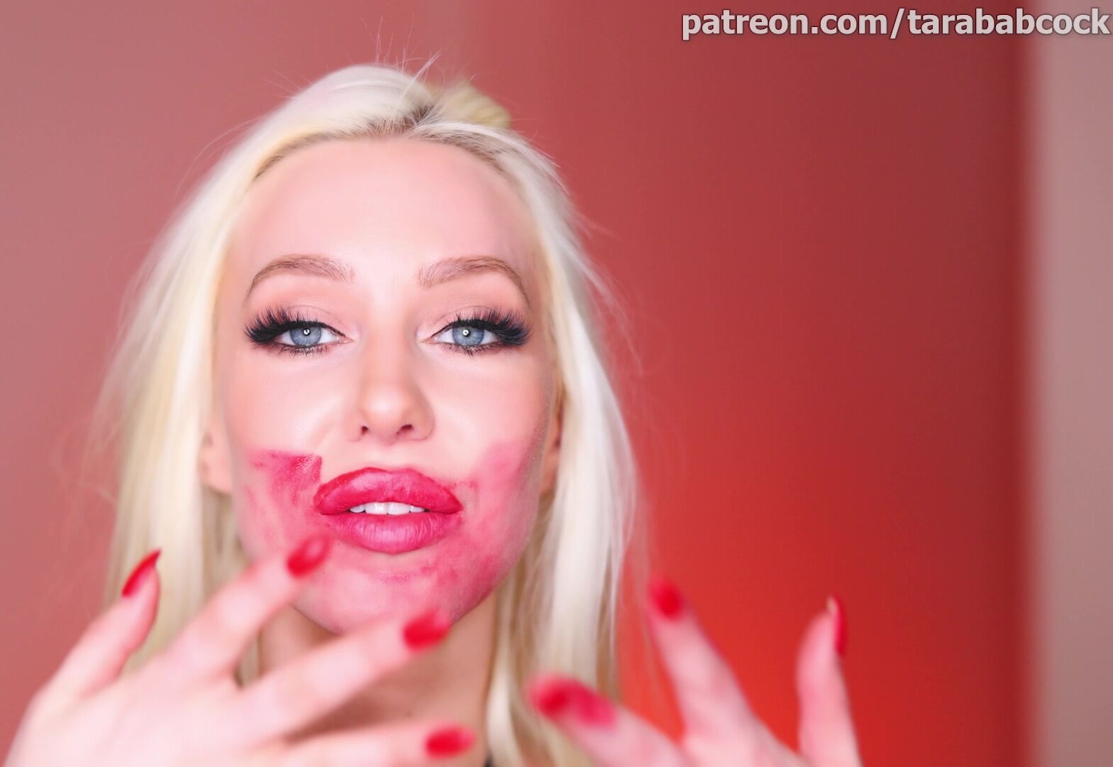 Curvy blonde TaraBabcock teases in black bondage lingerie, showing off her figure in this Patreon video.