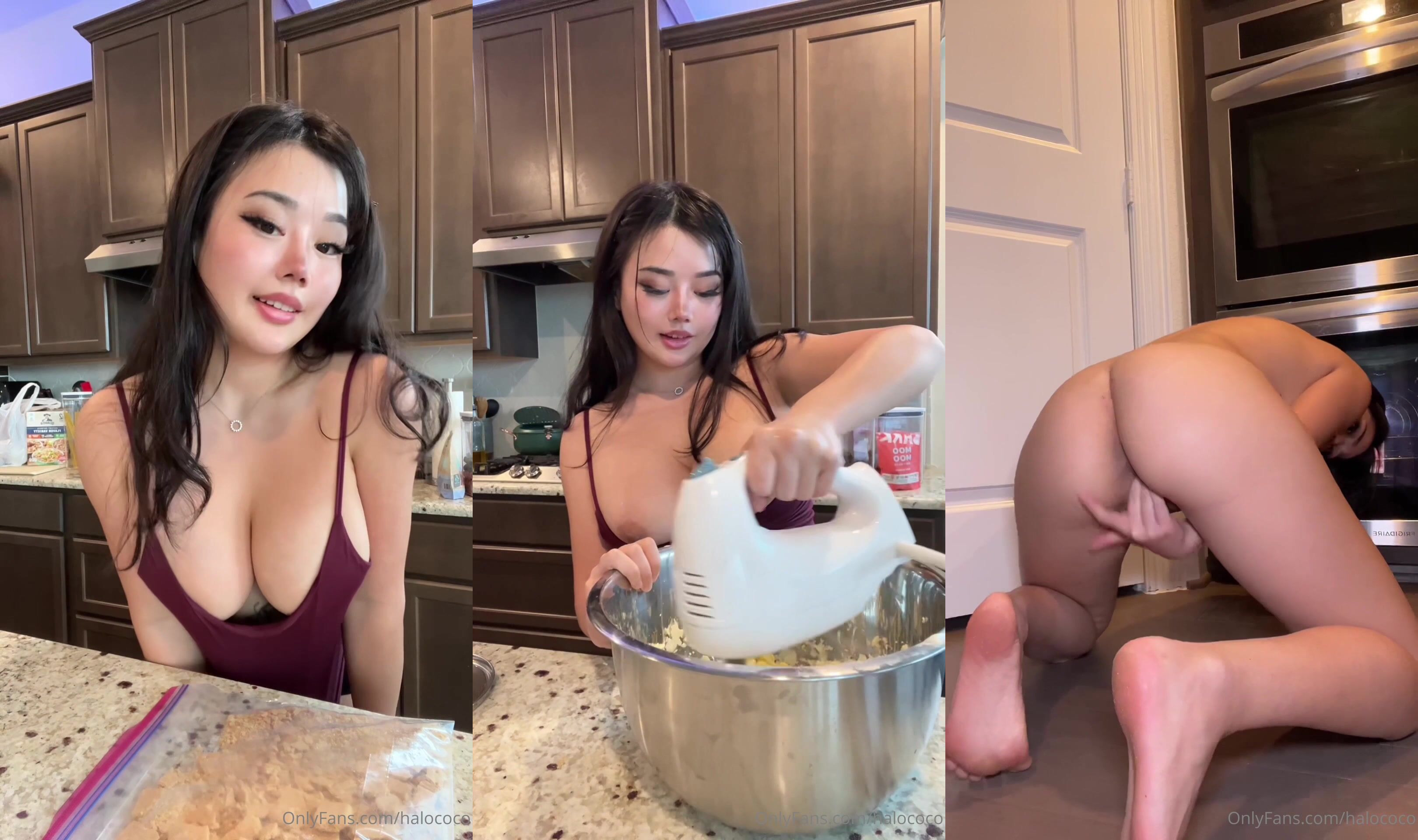 Halococo Cute Asian Gets naked and Fingers her Pussy in Kitchen Onlyfans Video