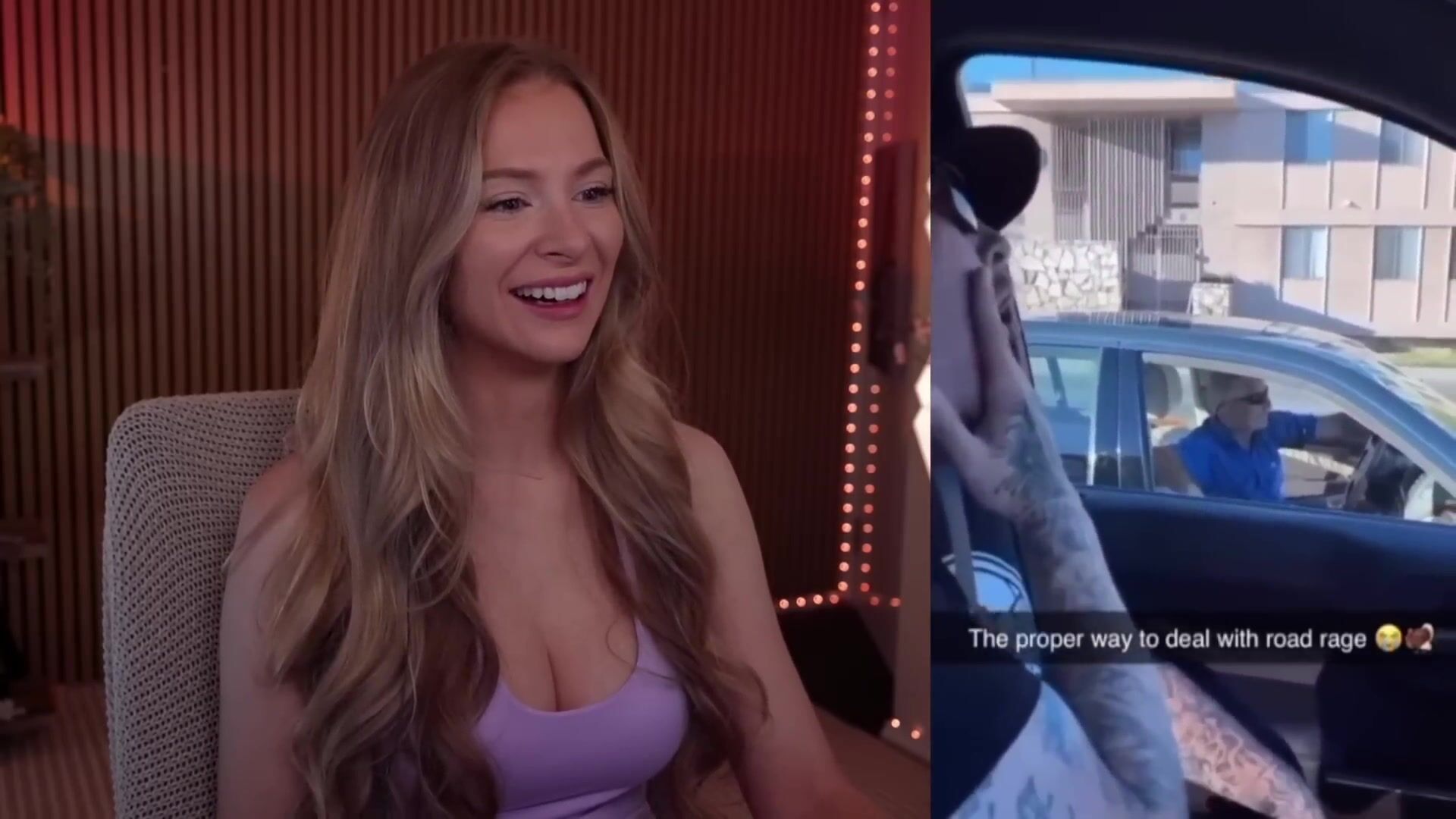 Blonde babe Bebahan pulls off a hilarious road rage prank in this 14-minute video while rocking a skimpy purple bikini top