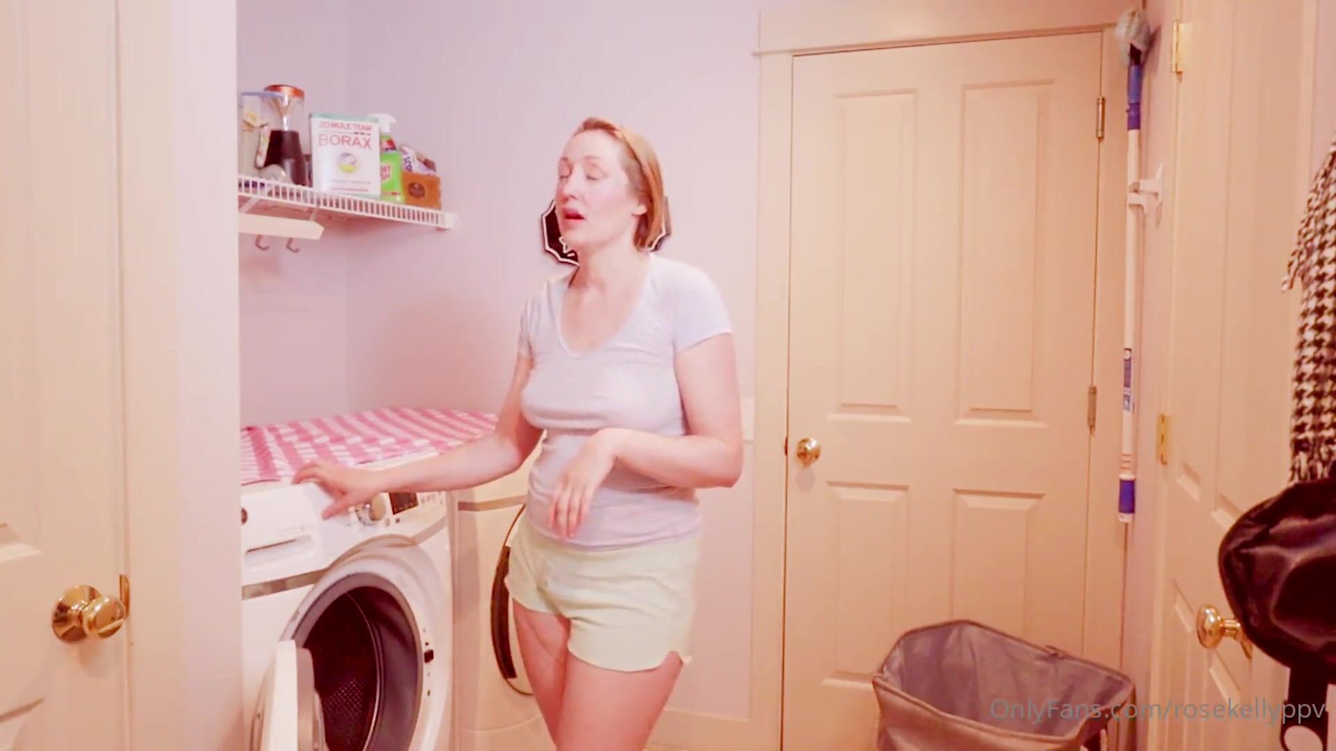 RoseKellyPPV turns laundry day into a steamy blowjob session, getting down on her knees in the laundry room and teasing with a deepthroat action