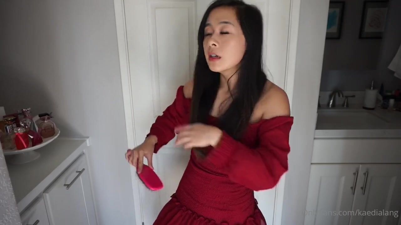 Petite cutie KaediaLang teases in a red dress while playing with her pink vibrator in this steamy OnlyFans video.