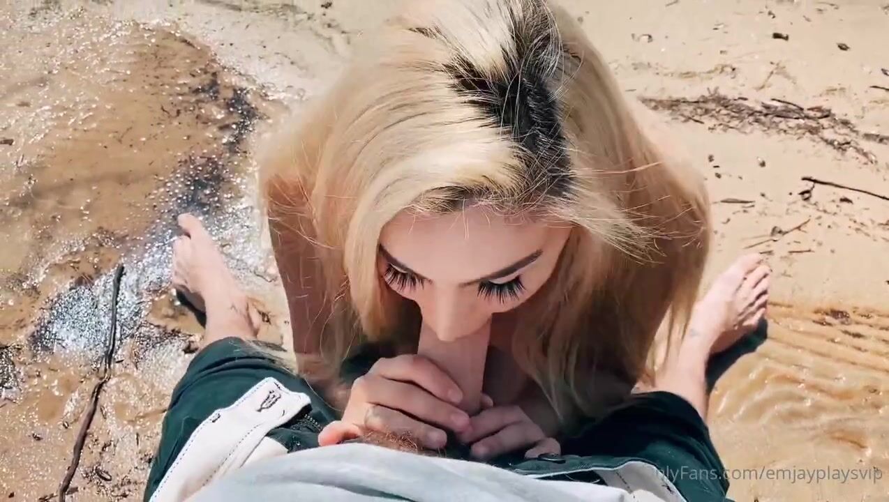 Blonde Emily Rinaudo gets down on the beach giving an intense POV blowjob with a messy cumshot finish in this leaked OnlyFans video.