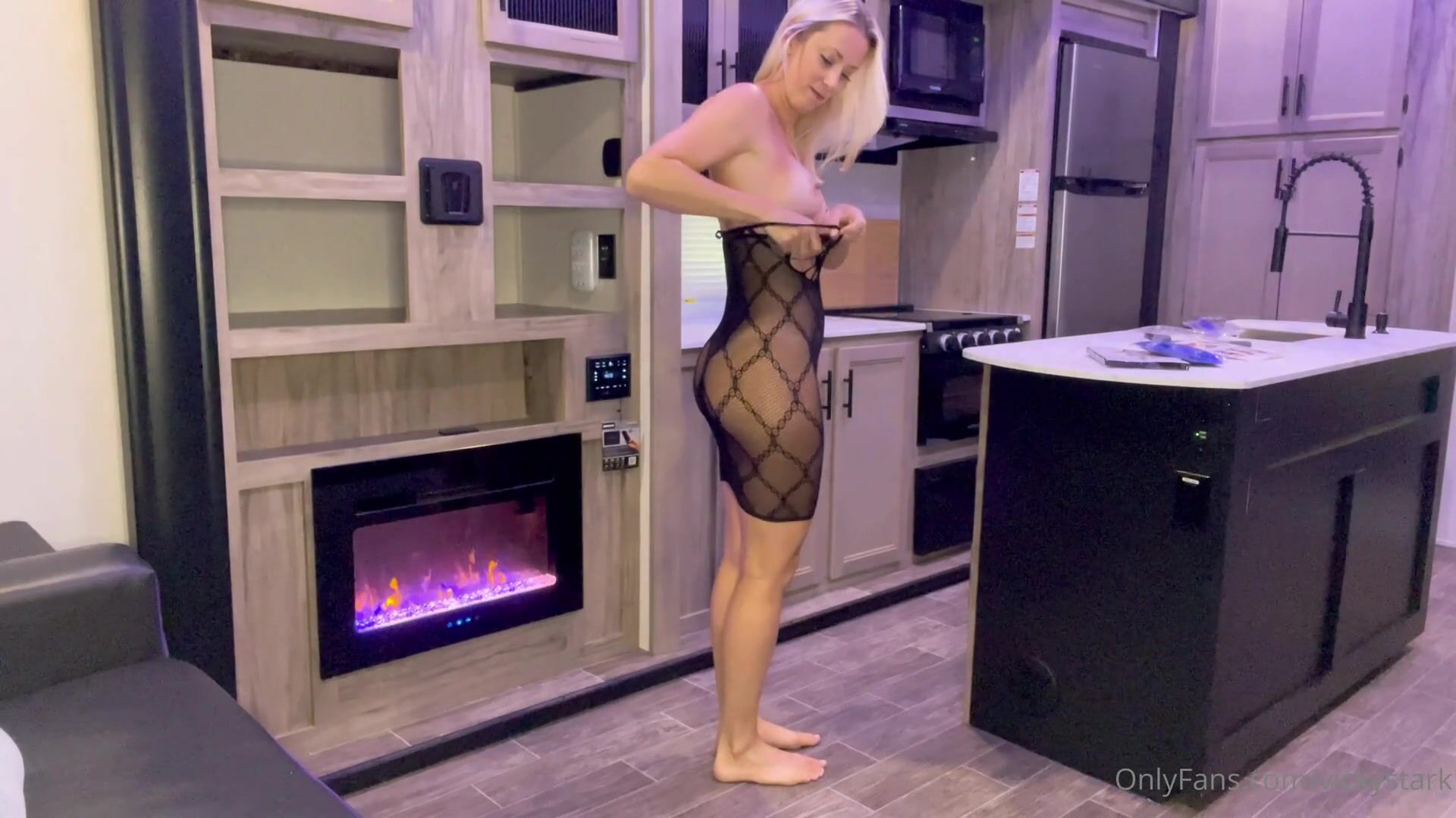 Vicky Stark präsentiert ihre üppigen Kurven in einem freizügigen, durchsichtigen Kleid, das in diesem geleakten OnlyFans-Video festgehalten wurde.