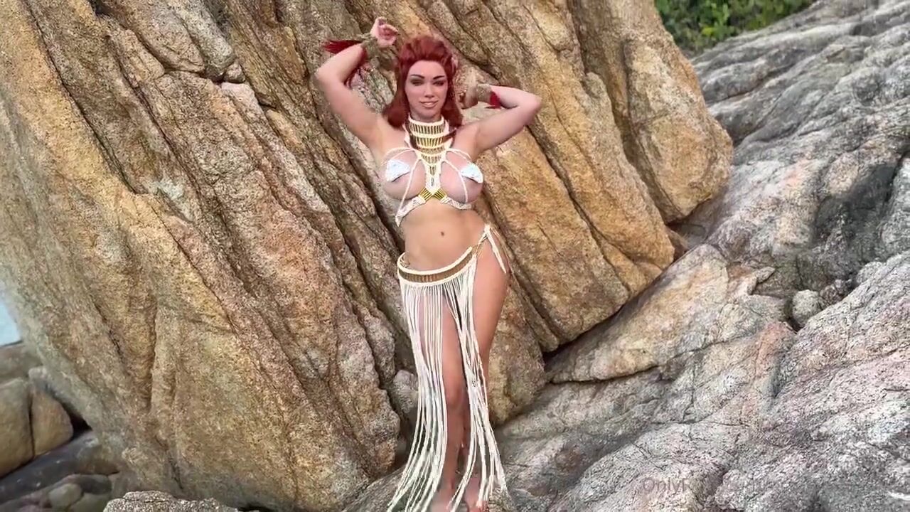 Octokuro spielt Aloy in diesem heißen Cosplay-Fickvideo mit Hintergrundgeschichte und neckt in ihrem sexy Kostüm vor einem harten Gaming-Fick.