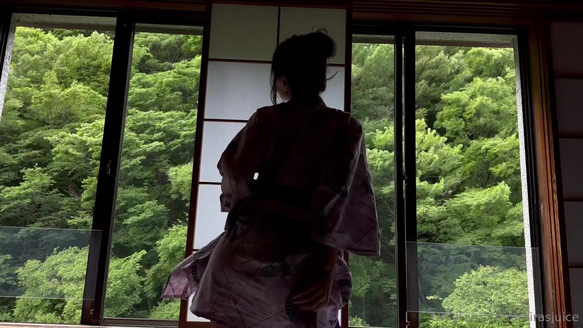 Sehen Sie sich das auf viralxxxporn.com geleakte OnlyFans-Video von miranowhere an, in dem sie nackt im Kimono tanzt und sich in der Nähe einer Fenstertür aufhält.