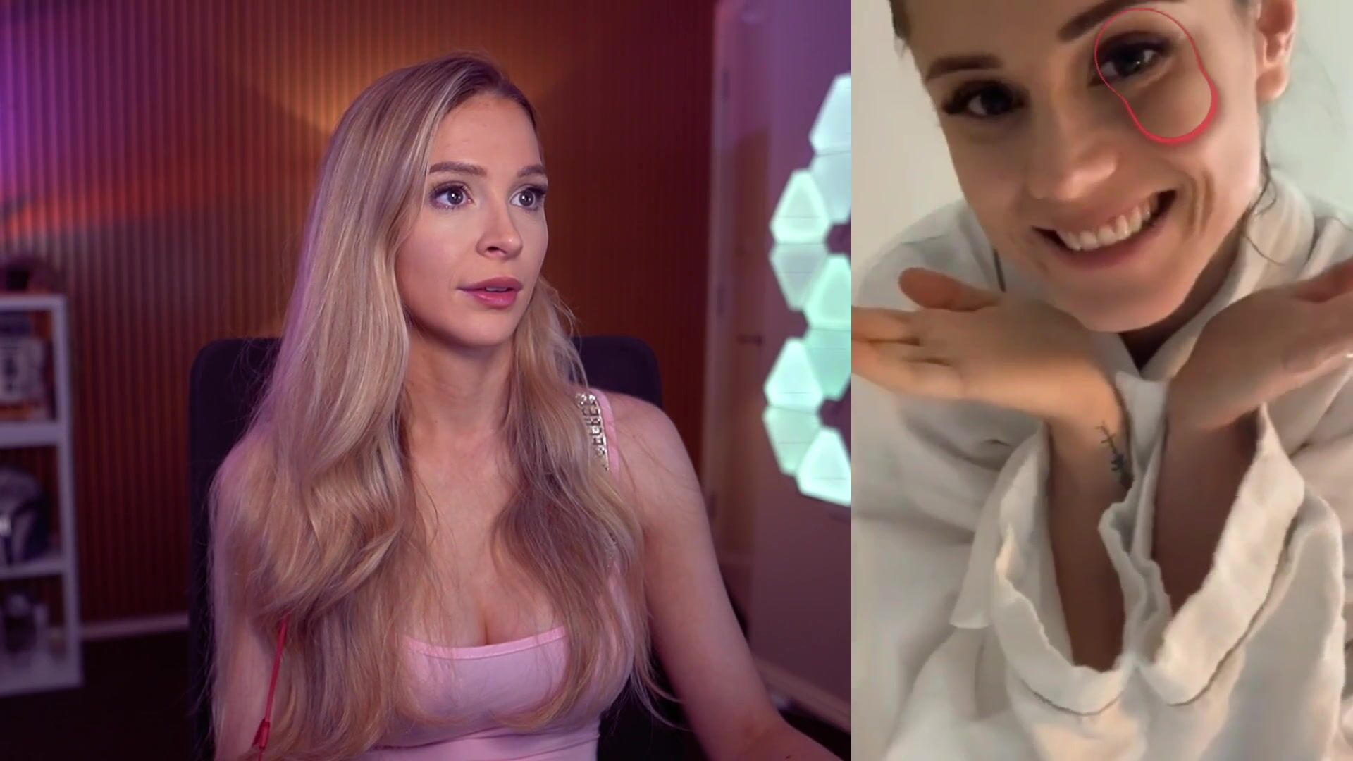 Bebahan, también conocida como Hannah Hot, reacciona a un video en vivo de clips sexuales.