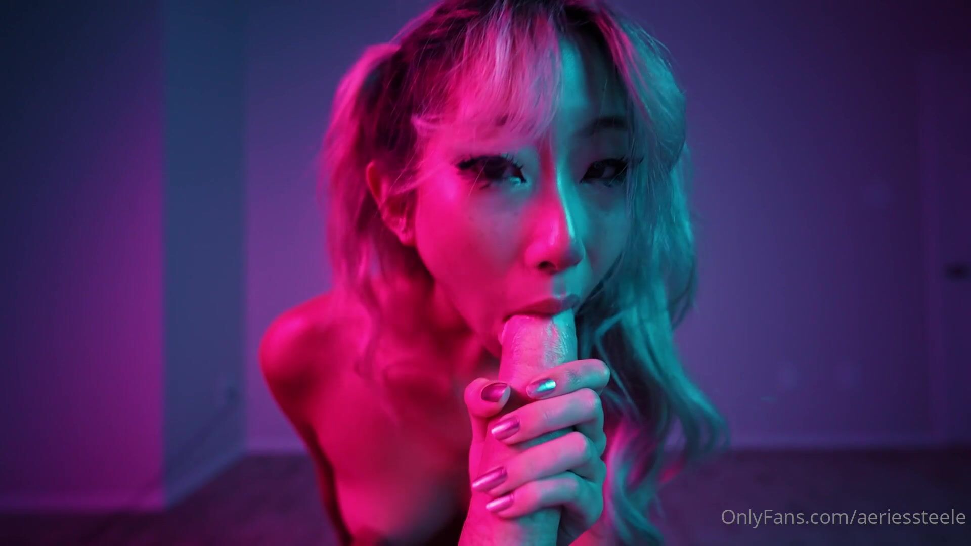 Aeries Steele le hace una felación a una polla enorme mientras le chupa las bolas hasta que se corre en su boca (vídeo de OnlyFans)