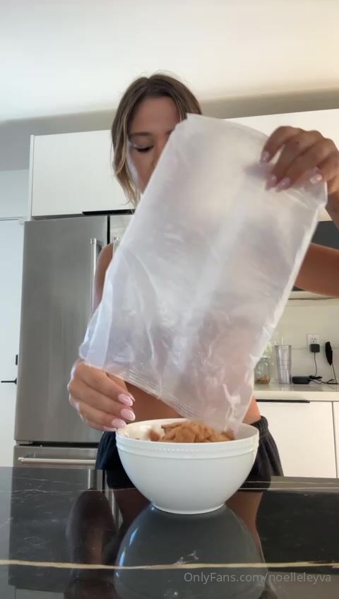 Mira el vídeo de OnlyFans de Noelleleyva mostrando sus tetas mientras prepara su desayuno, visto en viralxxxporn.com.