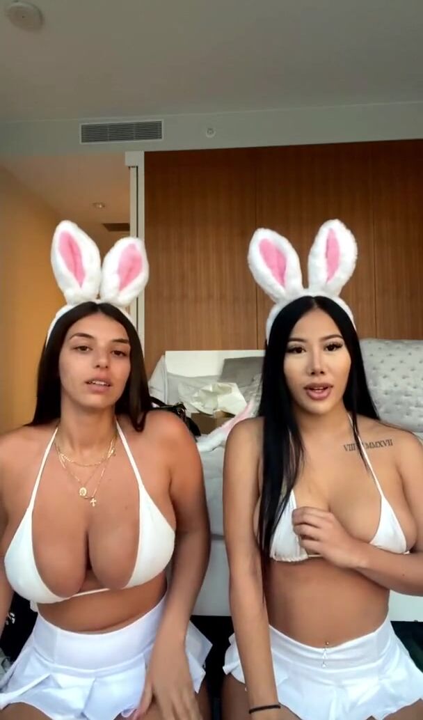 Amber Ajami muestra sus pechos voluptuosos con una amiga y los aprieta en un video en directo.