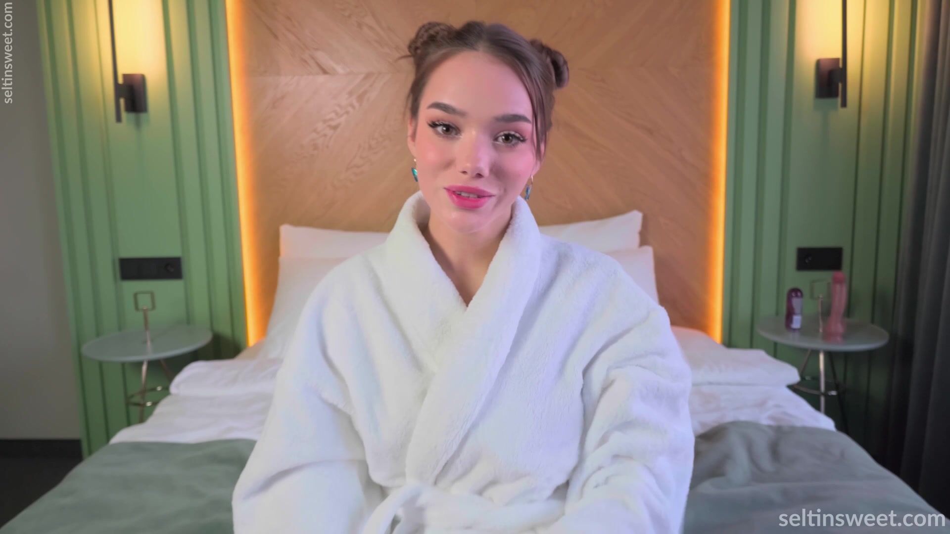 Vídeo de Selti asmr con primer plano de una mamada con consolador, vestida con un ...