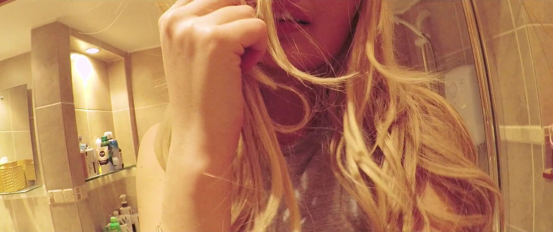 Mira a Danielle Sellers provocando con sus pechos desnudos en el video de la ducha visto en ViralxxxPorn.