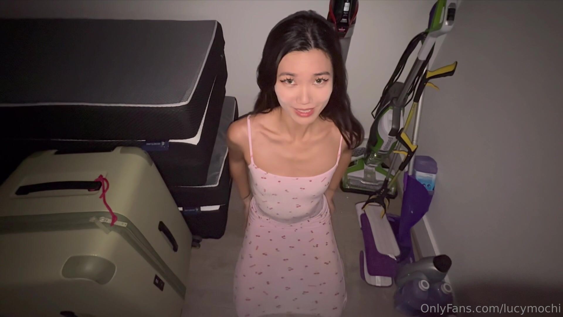 Lucy Mochi teasing with Blowjob and doggystyle fuck in storage room on OnlyFans.