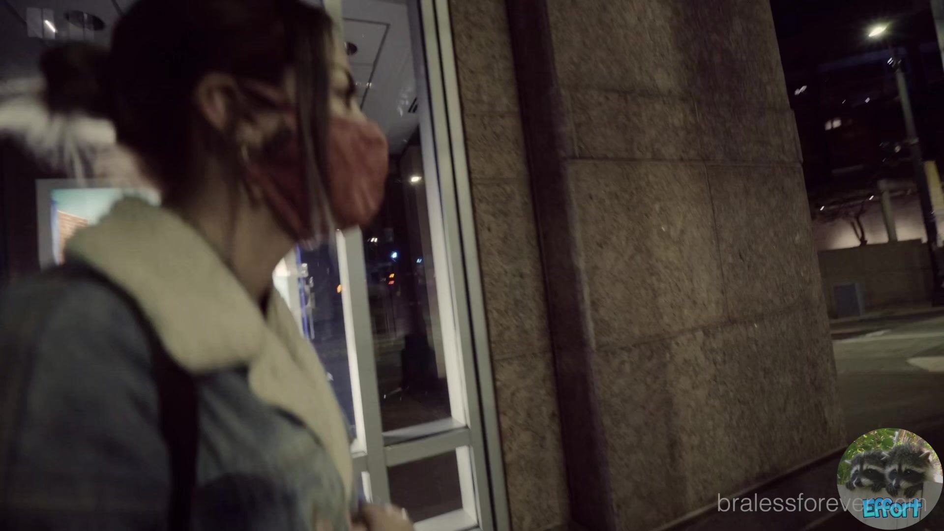 La curvilínea Bralessforever Bella sale a la ciudad y muestra sus senos en público.