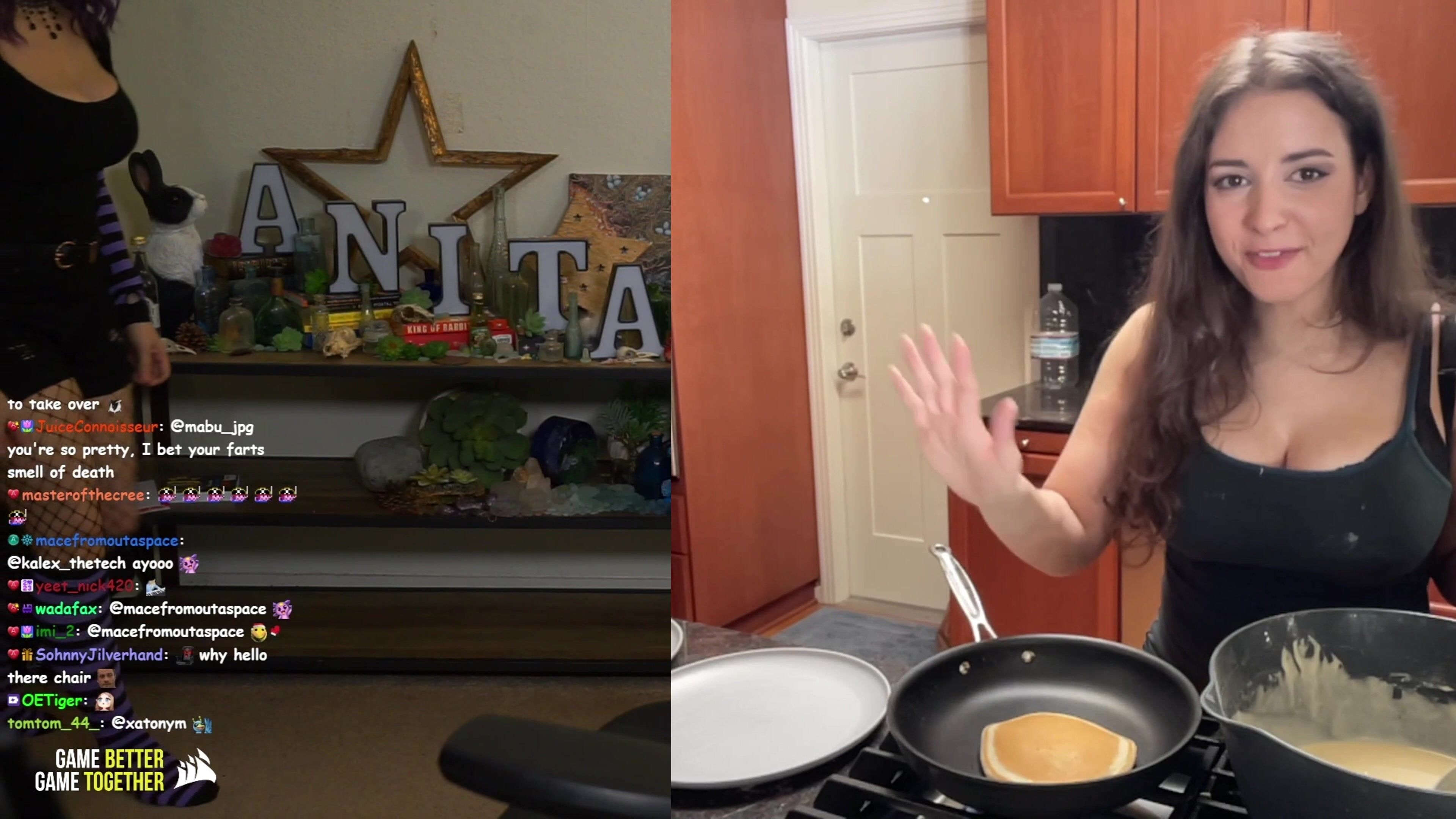 Sweet Anita heats things up in the kitchen wearing a revealing black outfit as she cooks pancakes and flirts with viewers in this fun and flirty video.