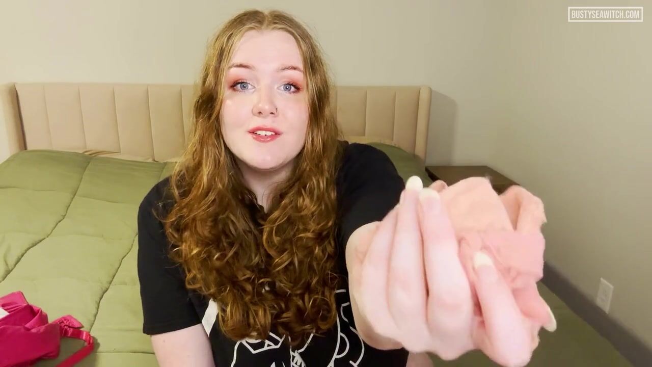 Curvy goddess BustySeaWitch teases in lingerie and shows off her big tits and pink pussy in a steamy bedroom video