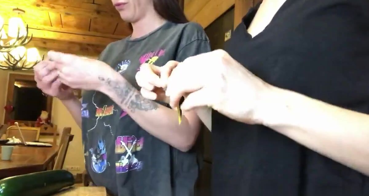 Bbmarie protagoniza este loco vídeo de festival de sexo lésbico en el que ella y sus amigas desnudas se vuelven locas en la cocina usando consoladores de calabacín para pasar un buen rato atrevido lleno de acción de golpes de coño.