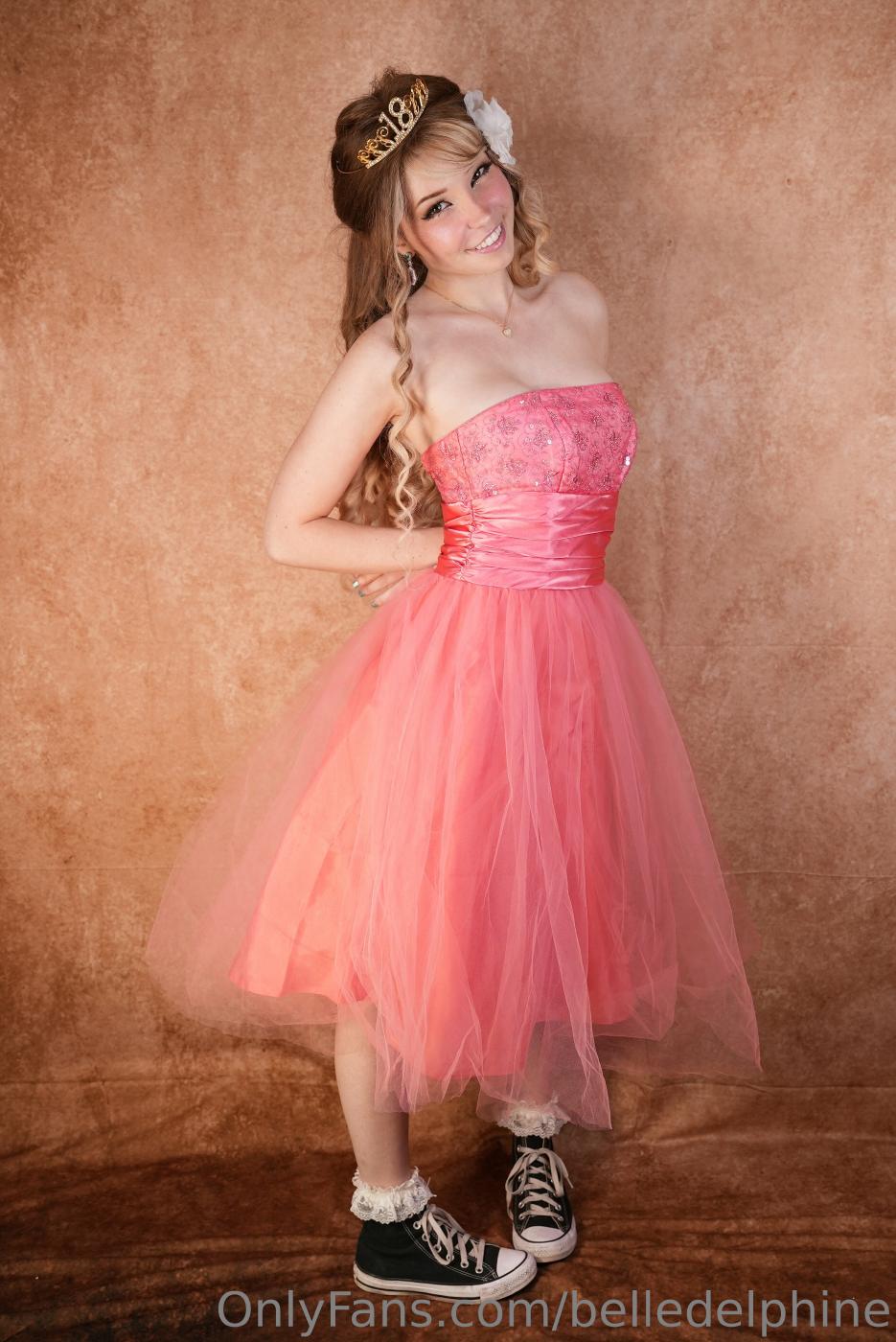 Fuite d'une photo de Belle Delphine nue en robe rose pour son bal de promo, prise lors d'un OnlyFans.