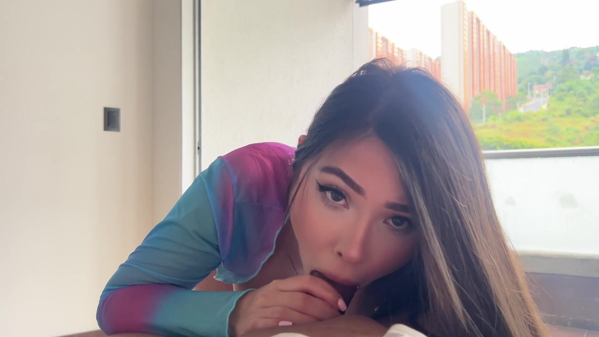 vidéo d'une jolie jeune asiatique faisant une fellation avec éjaculation dans la b...