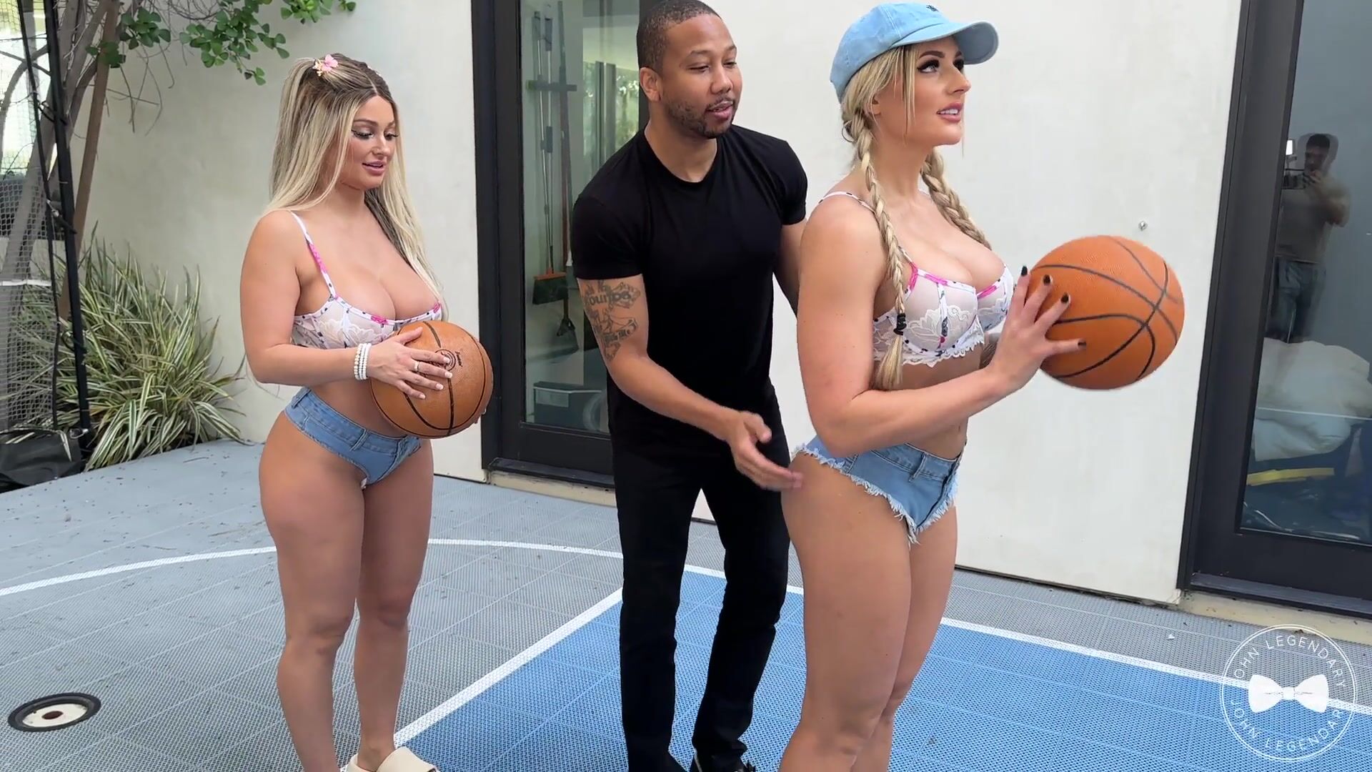 Busty PAWGs Gabbyfit and Musclebarbie take on BBC coach Dan Dangler in an outdoor threesome on a basketball court.