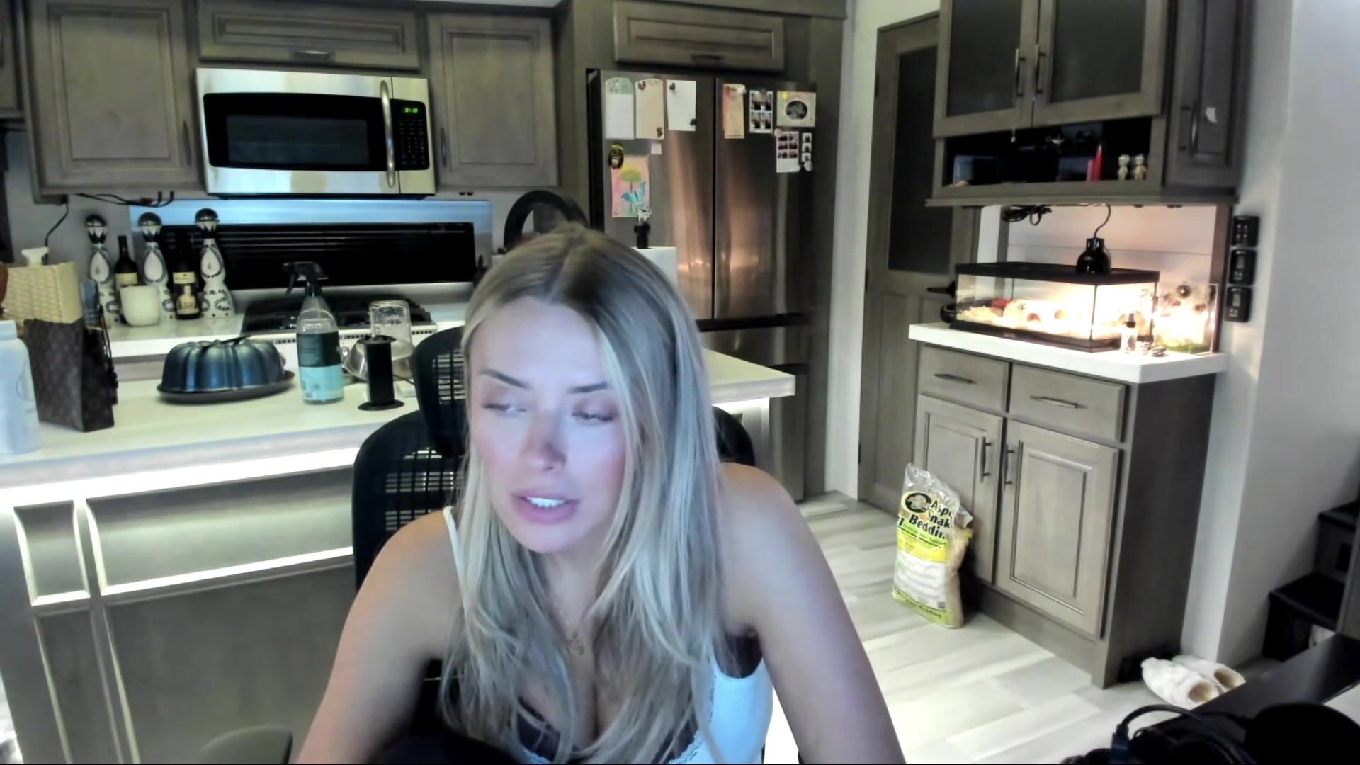 Corinna Kopf Showing off her boobs during steamy live stream in the kitchen