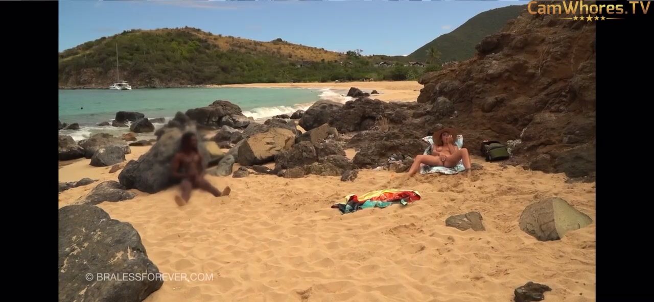 BralessForever Blondie Masturbation Extérieure À La Plage Avec Les Doigts Et Bronzage Nu