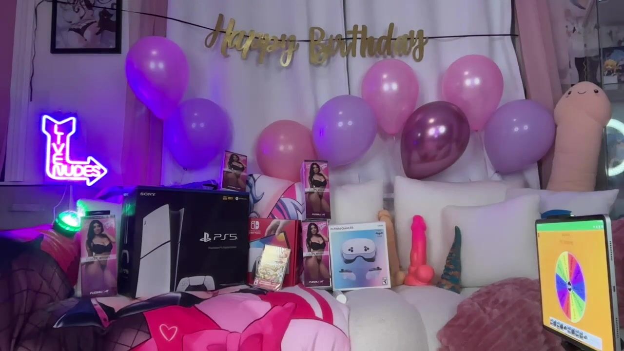 Violet Myers goes wild in this almost 2-hour live stream masturbation video, using sex toys while teasing her pussy and showing off her naked body. She spices up the stream with a PS5 giveaway and a fun spin-the-wheel game for her fans.