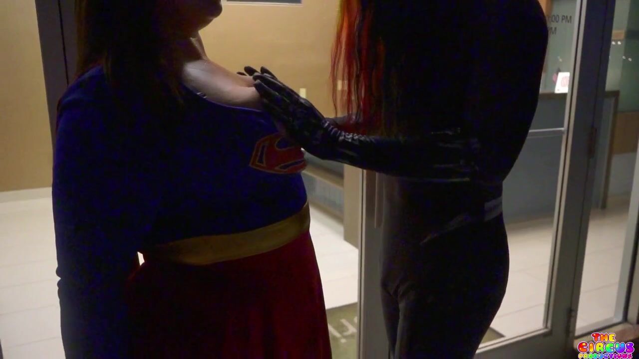Curvy Supergirl Gibby Panther teases in a Supergirl costume as her boobs get groped in a parking garage.
