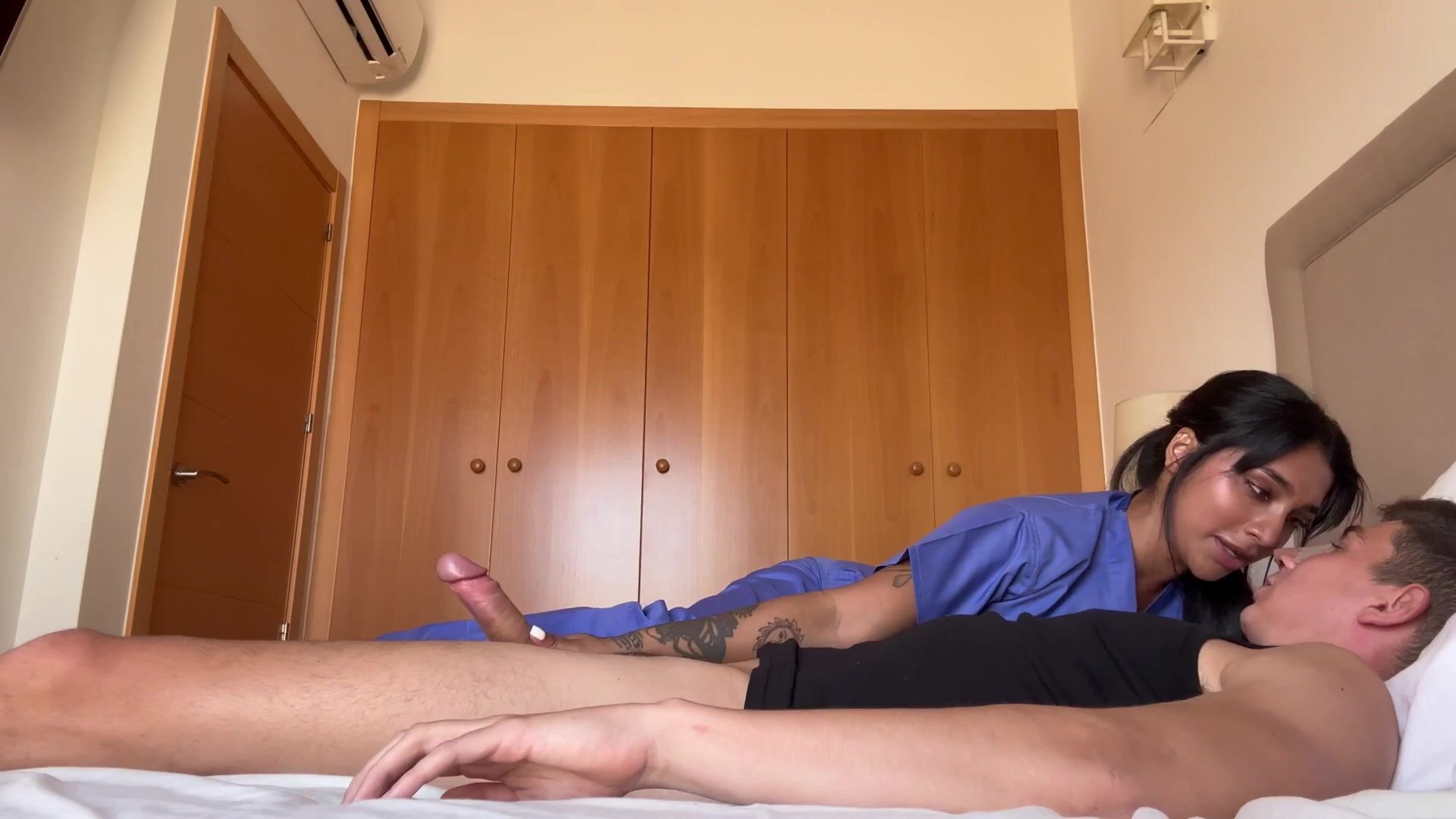 Yasmina Khan excite son infirmière aux grosses fesses, qui se fait remplir le cul de sperme par un patient.