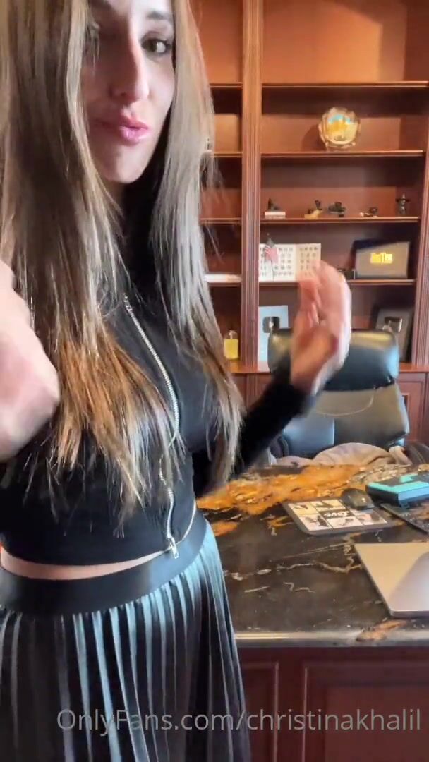 ChristinaKhalil teases in tight skirt before riding a huge BBC dildo in her office