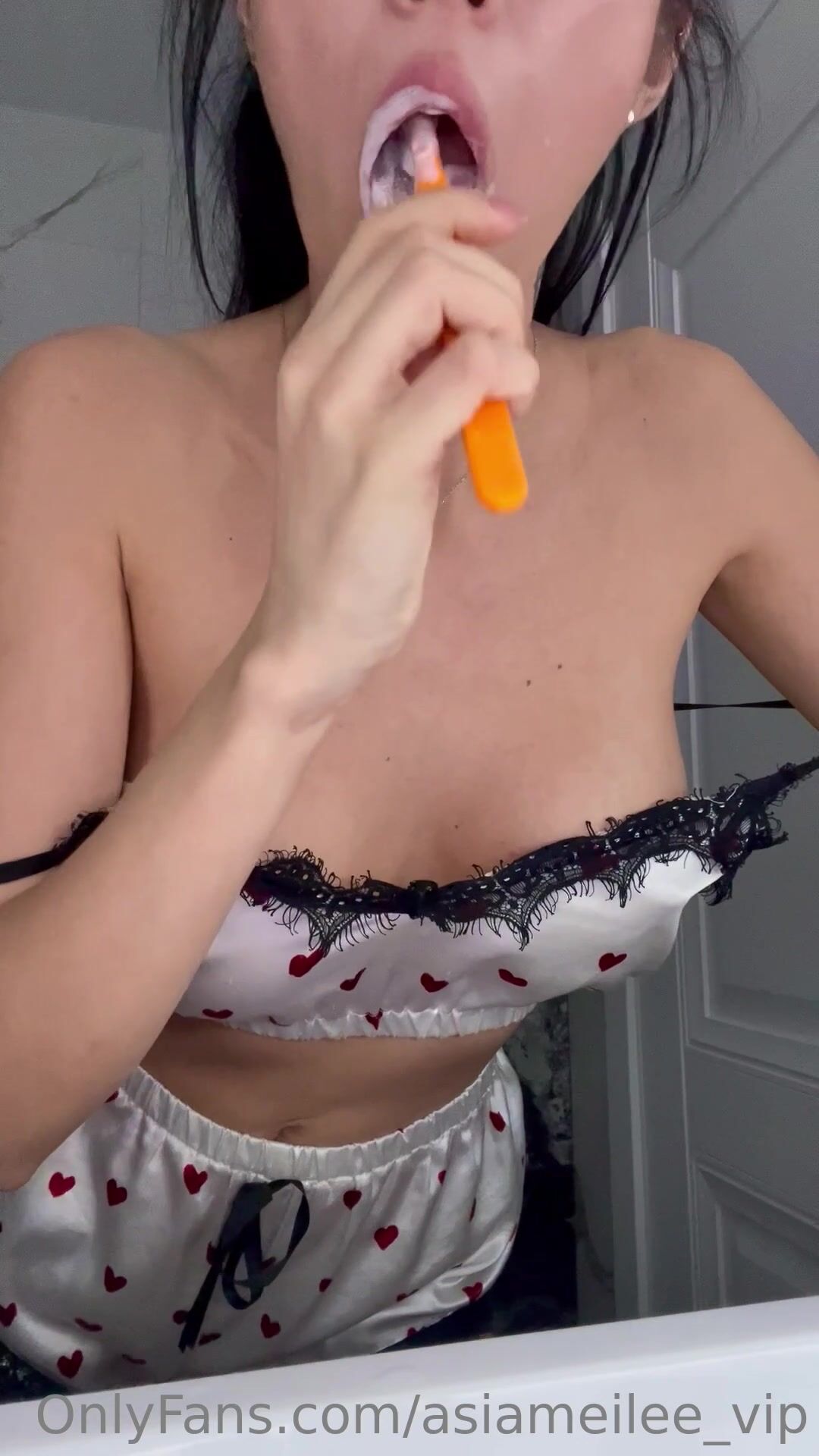 Asiameilee, alias yoonaleecake, si spazzola i capezzoli con la lingua e si eccita, video OnlyFans