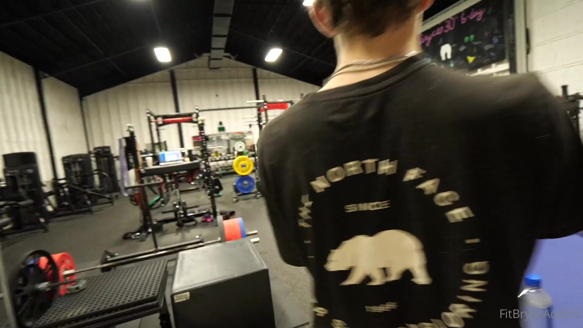 Fitbryceadams e la sua ragazza completamente nude si allenano in una palestra pubblica, provocando il seno - Video OnlyFans