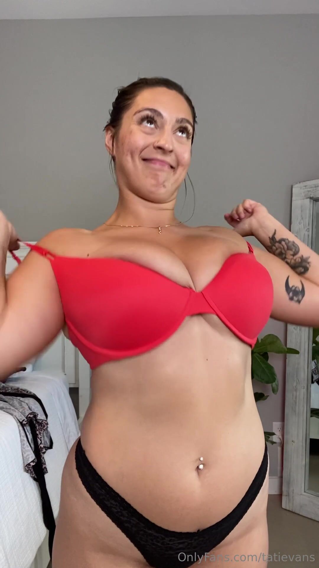 Guarda il video trapelato di tatievans che si tocca i seni grandi durante una prova di reggiseni, apparso su OnlyFans e poi su viralxxxporn.com.