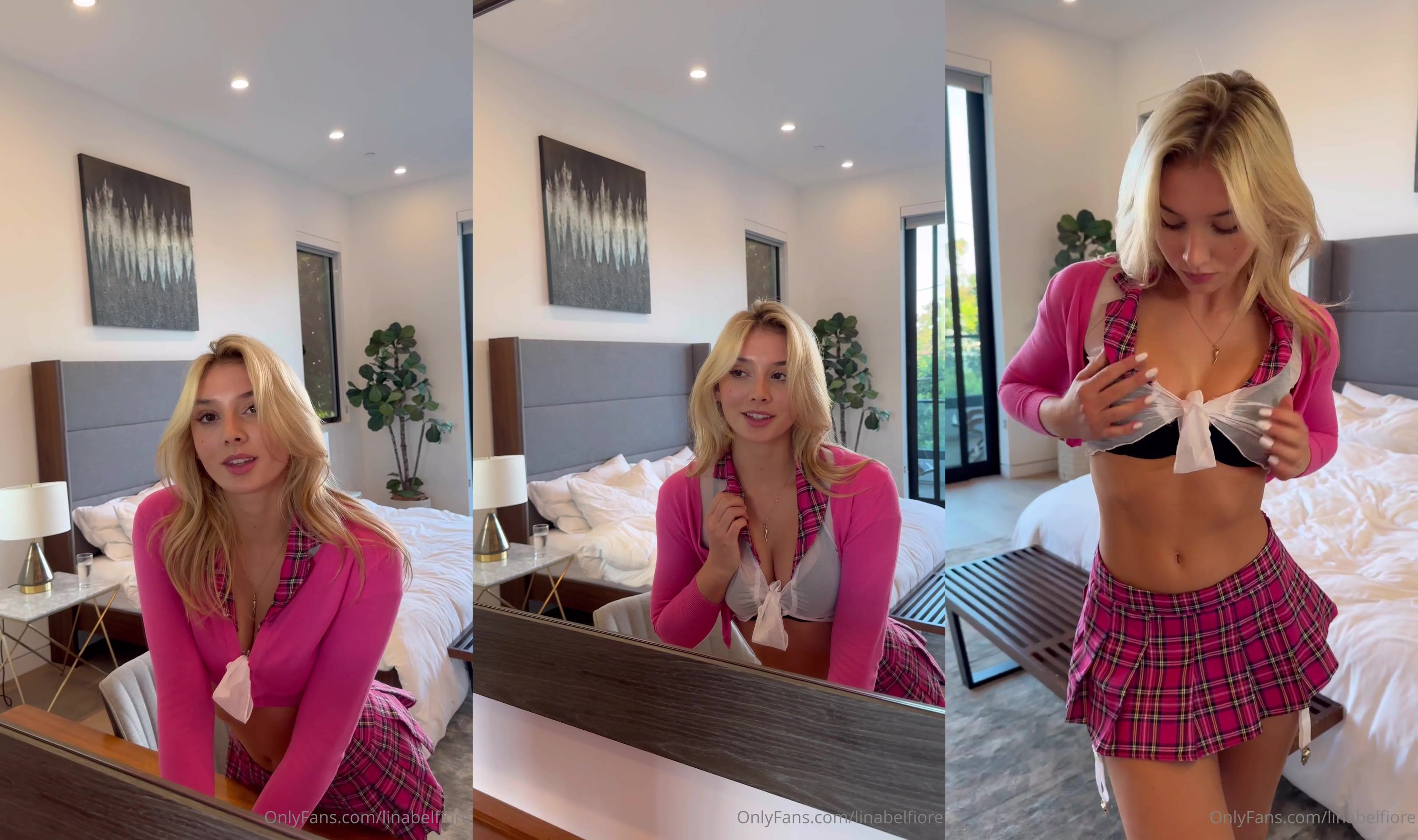 Lina Belfiore Topless Strip Tease in Pink Lingerie on OnlyFans Video