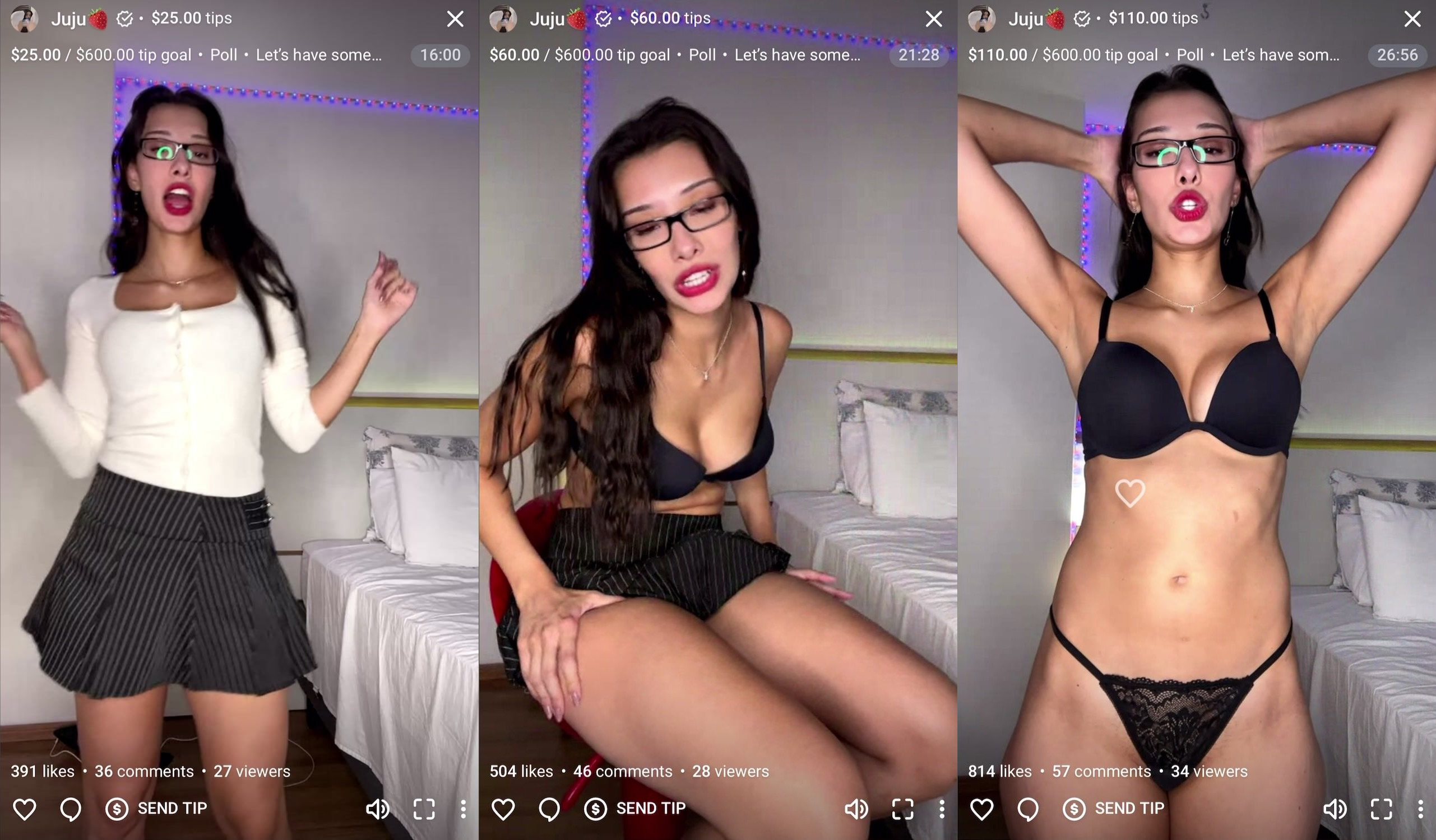 Juju si spoglia fino a rimanere in lingerie con occhiali da nerd in live stream provocante