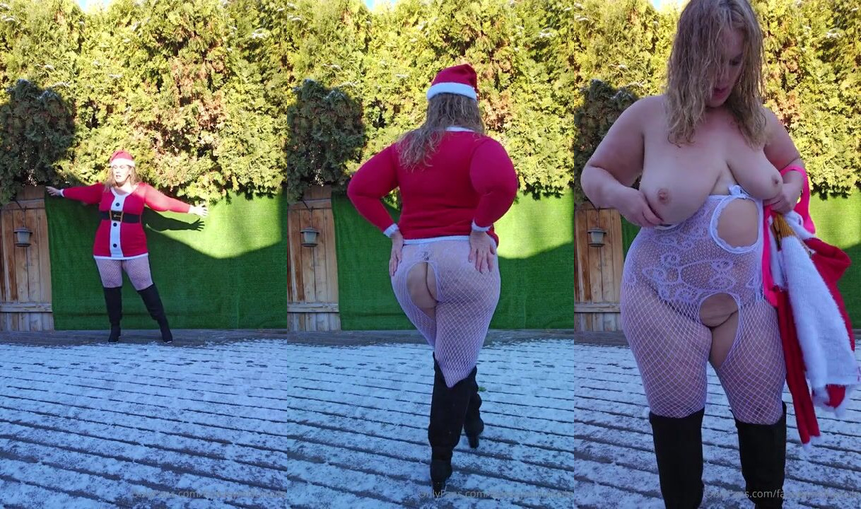Fantasymilfursula brings the heat in this festive outdoor Christmas video, teasing in red lingerie and fishnet stockings, showing off her curves and holiday spirit.