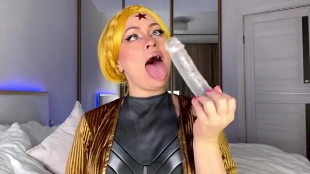 Atomic Heart Cosplay Babe Deepthroats Dildo in Amateur Video" Dressed as a sexy Atomic Heart babe this amateur cosplayer teases and deepthroats a massive dildo in her homemade POV cock sucking video