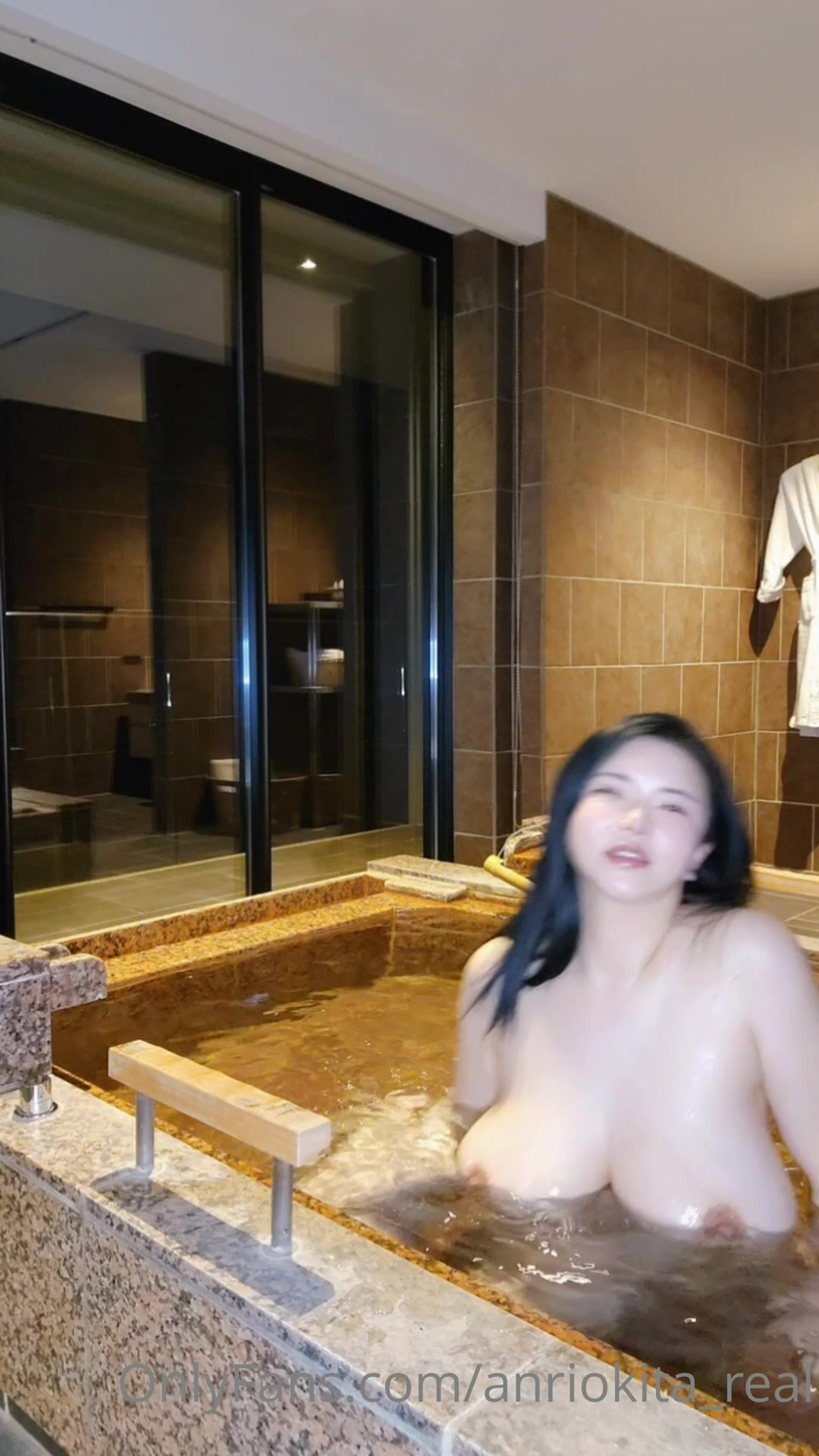 Anri Okita nuda in topless in bagno gioca con le sue grandi tette, video trapelato su OnlyFans