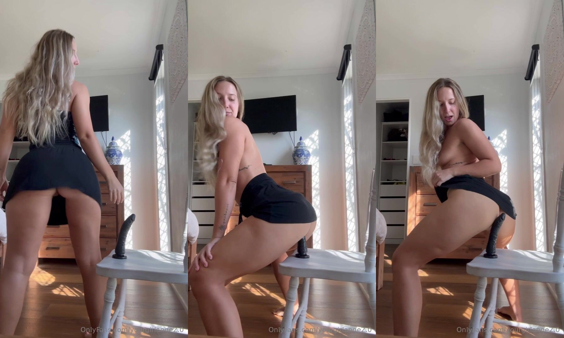 TikTokの淫売 Yourgirlange がブラックディルドでトワーキング