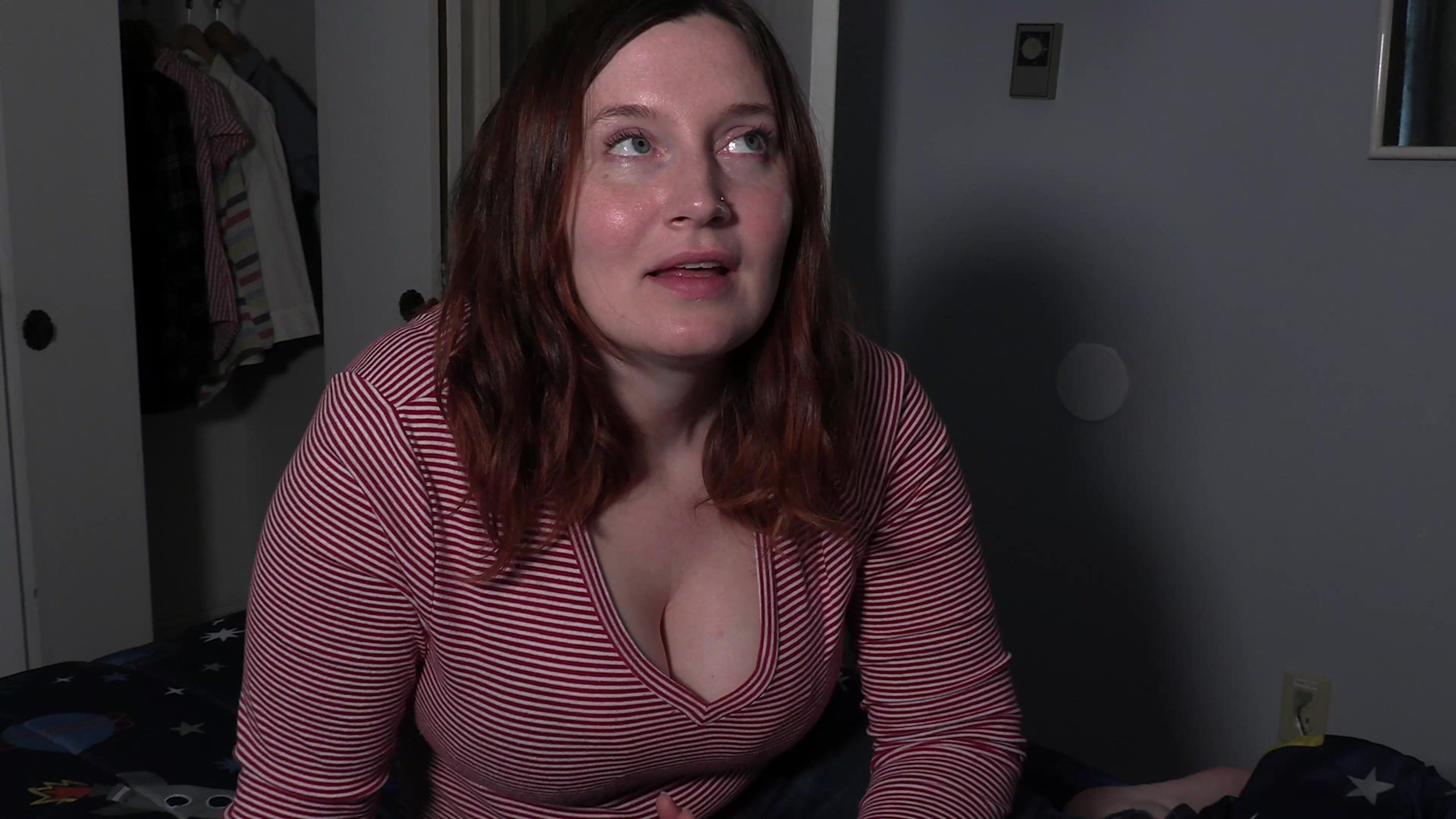 ベティのボンデージ継母が息子のペニスをからかい始め、ベッドの上でそれに乗るPOVビデオ