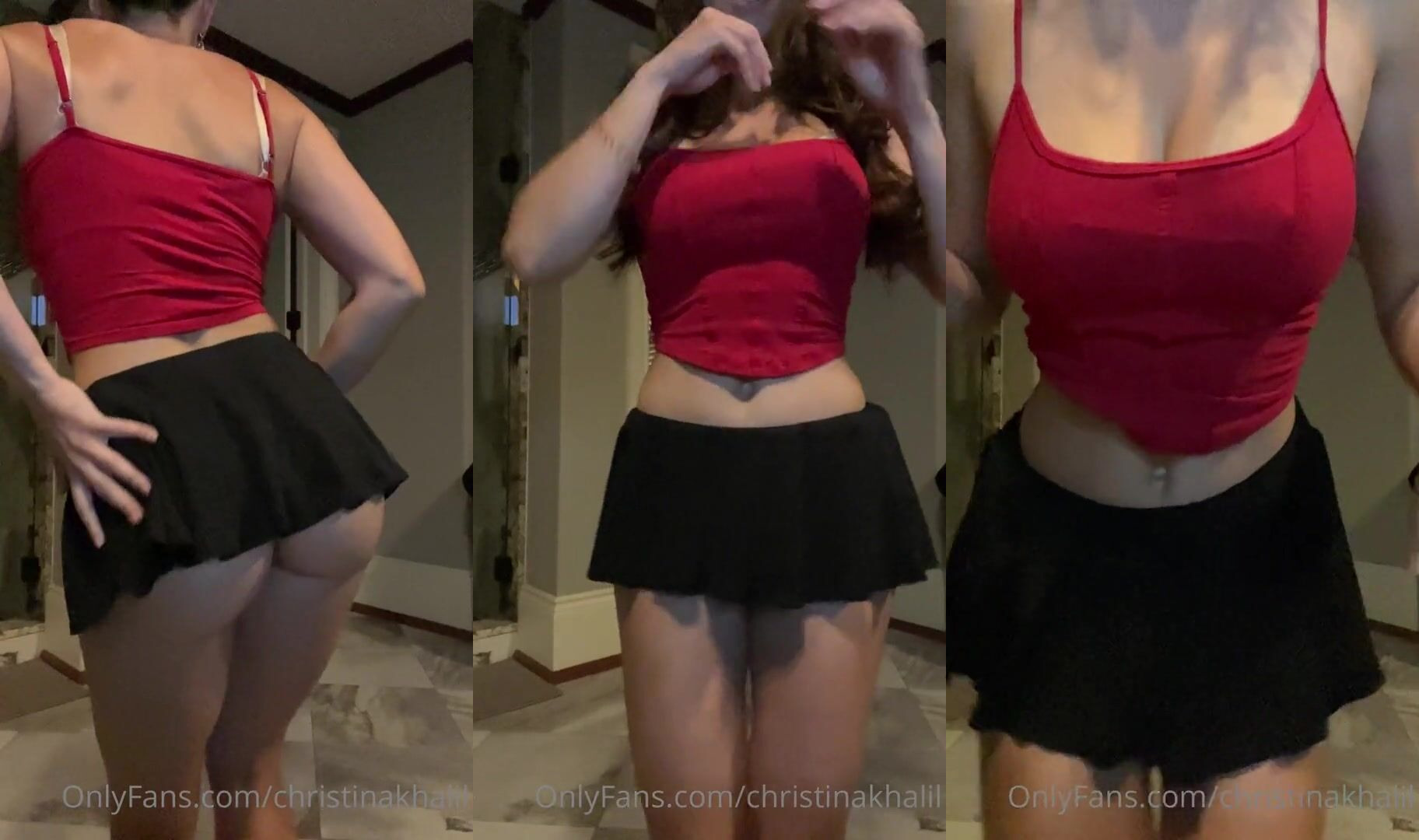 Curvy Goddess Christina Khalil teases in a sexy red crop top and tiny black skirt, flaunting her irresistible curves in this steamy OnlyFans video.