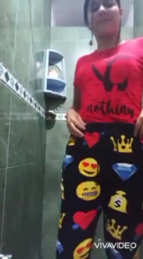 女の子がお風呂に入る前に浴室で立って自慰行為をするインドのビデオテープ