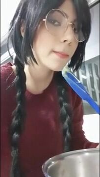 Juka Crasoves teases her geeky side in slutty cosplay waifu video