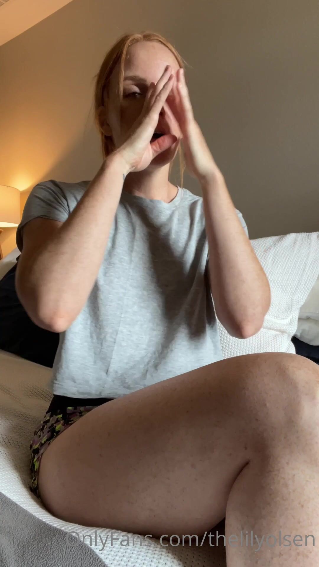 Thelilyolsenがベッドで脚を広げ、いとこが彼女を指で触れに来た。Onlyfansのリーク動画。