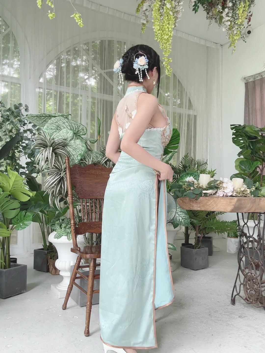 華雨のセクシーなオリジナル翡翠チャイナドレス動画が流出