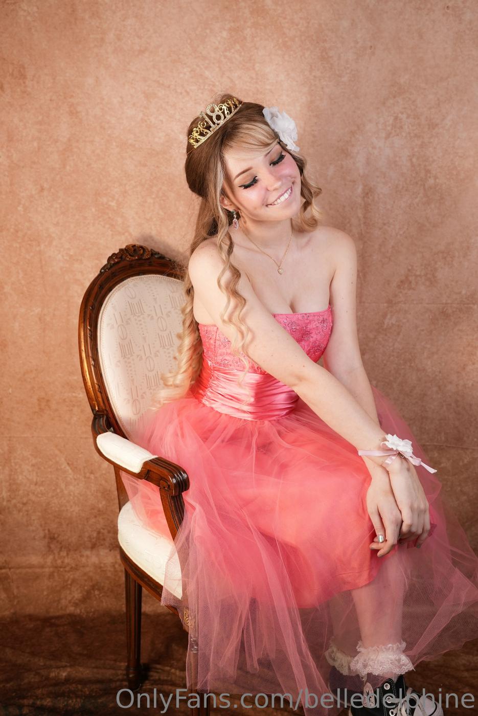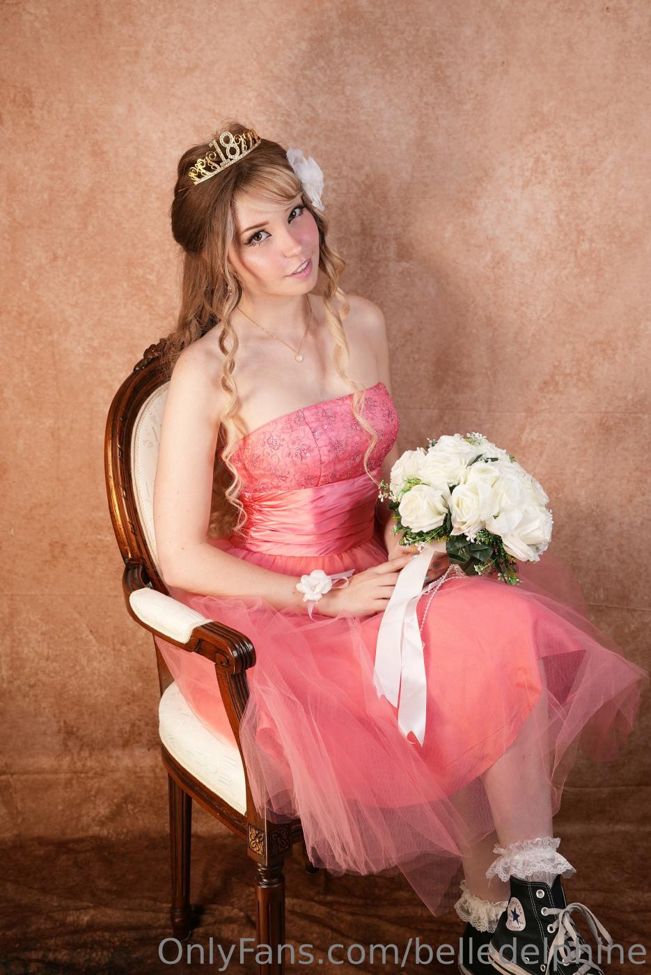 Vazou o ensaio fotográfico de Belle Delphine nua em um vestido rosa para o baile de formatura no OnlyFans.