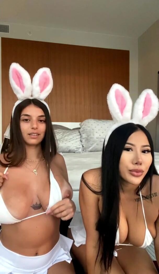 Veja Amber Ajami exibindo seus seios fartos para uma amiga e apertando-os em um vídeo transmitido ao vivo no viralxxxporn.com.