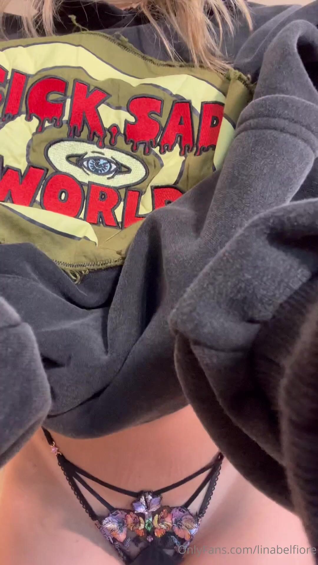 Veja Lina Belfiore fazendo striptease usando um moletom com capuz, mostrando close do bumbum e dos seios. Vídeo exclusivo do OnlyFans visto em viralxxxporn.com.