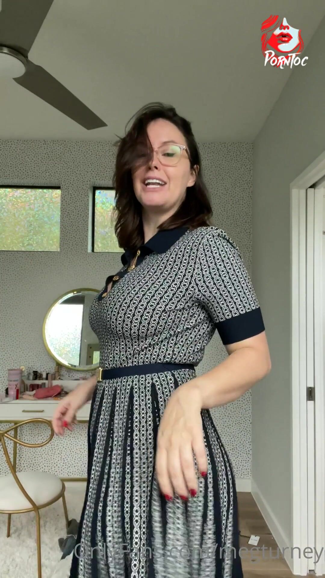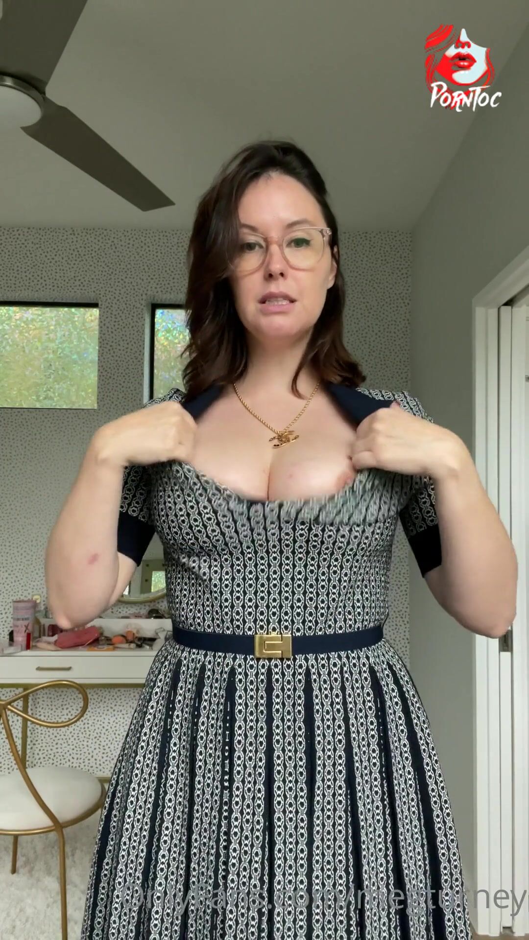 Meg Turney, vídeo pornográfico vazado do OnlyFans com vestido revelador.
